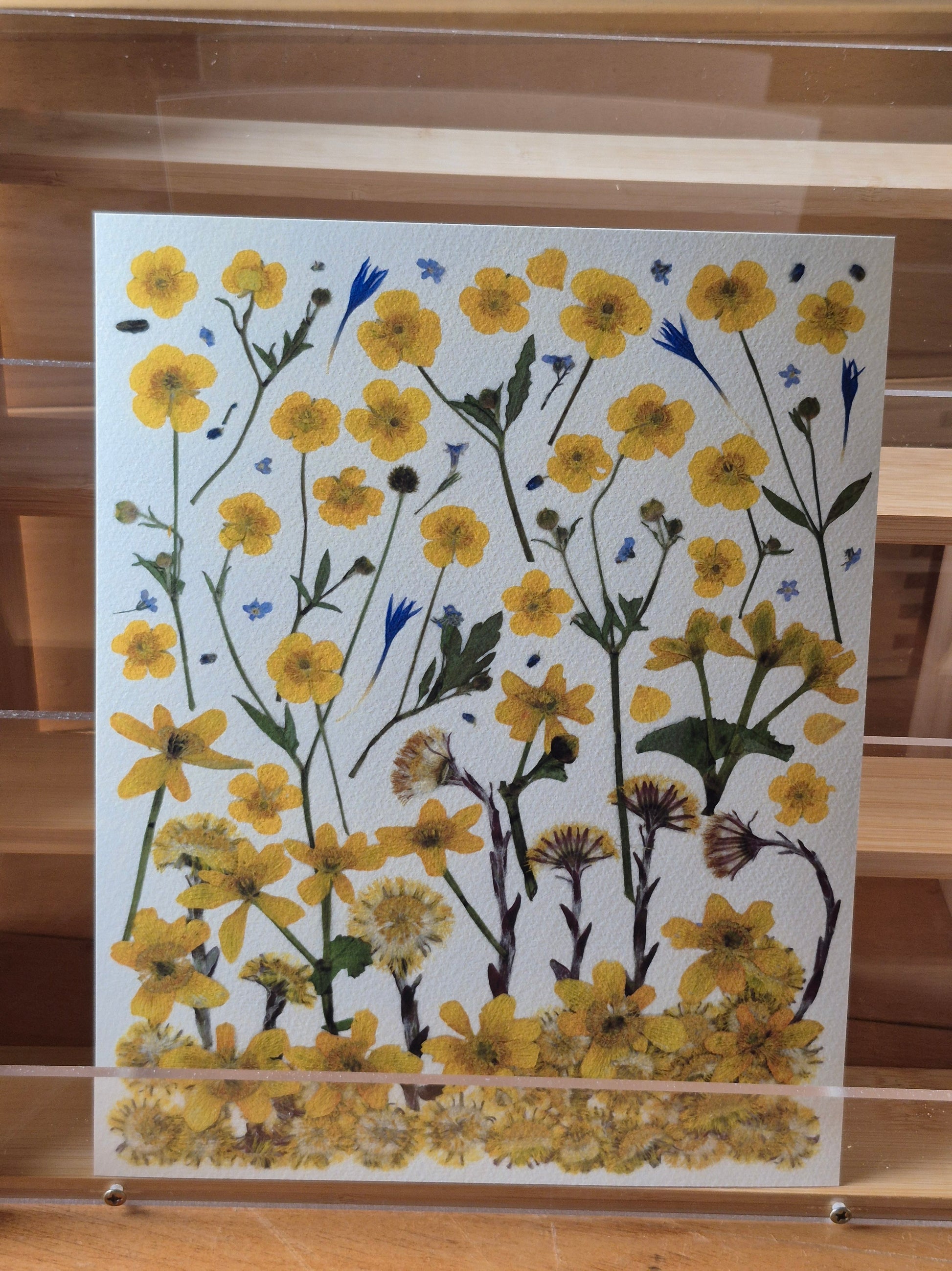🌼 Œuvre “Jaune printemps” – Art floral en fleurs séchées